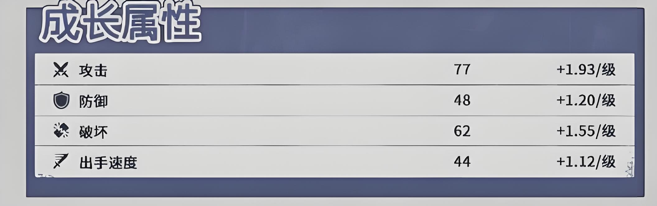 1、成长属性侧重攻击暴击与吸血,攻击每级增长8到10点夯实输出基础,暴击率每级提升1点2至1点5%,吸血属性确保持续续航。