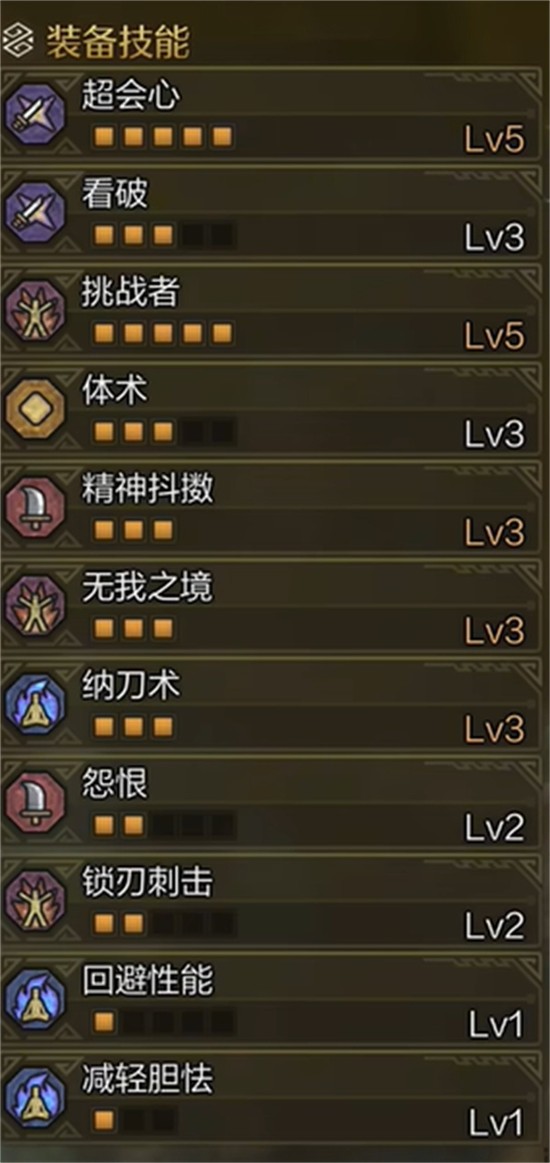 3、核心技能需达成挑战者7级超会心3级达人艺3级看破3级逆境2级,通过挑战护石II补充所需技能点数。