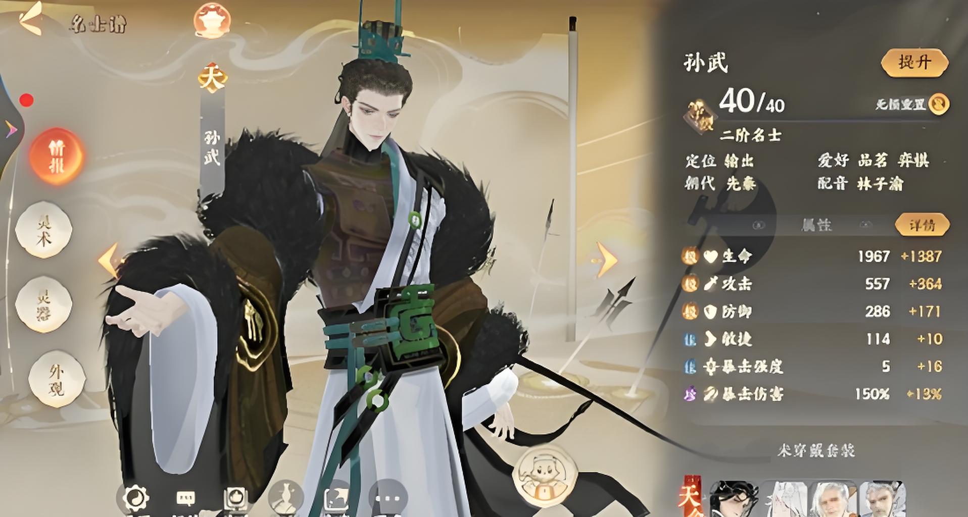 忘川风华录中孙武是技能机制与定位搭配紧密相关的名士,兼具独特输出方式与团队辅助能力,培养过程需围绕属性匹配、阵容适配及资源合理分配展开。很多玩家在搭配孙武出战时,常对其技能触发条件、猫灵选择及灵器洗练方向存在疑问,本文会详细介绍其技能效果及完整培养方案,包括猫灵类型适配场景、灵器部位属性选择等关键内容。