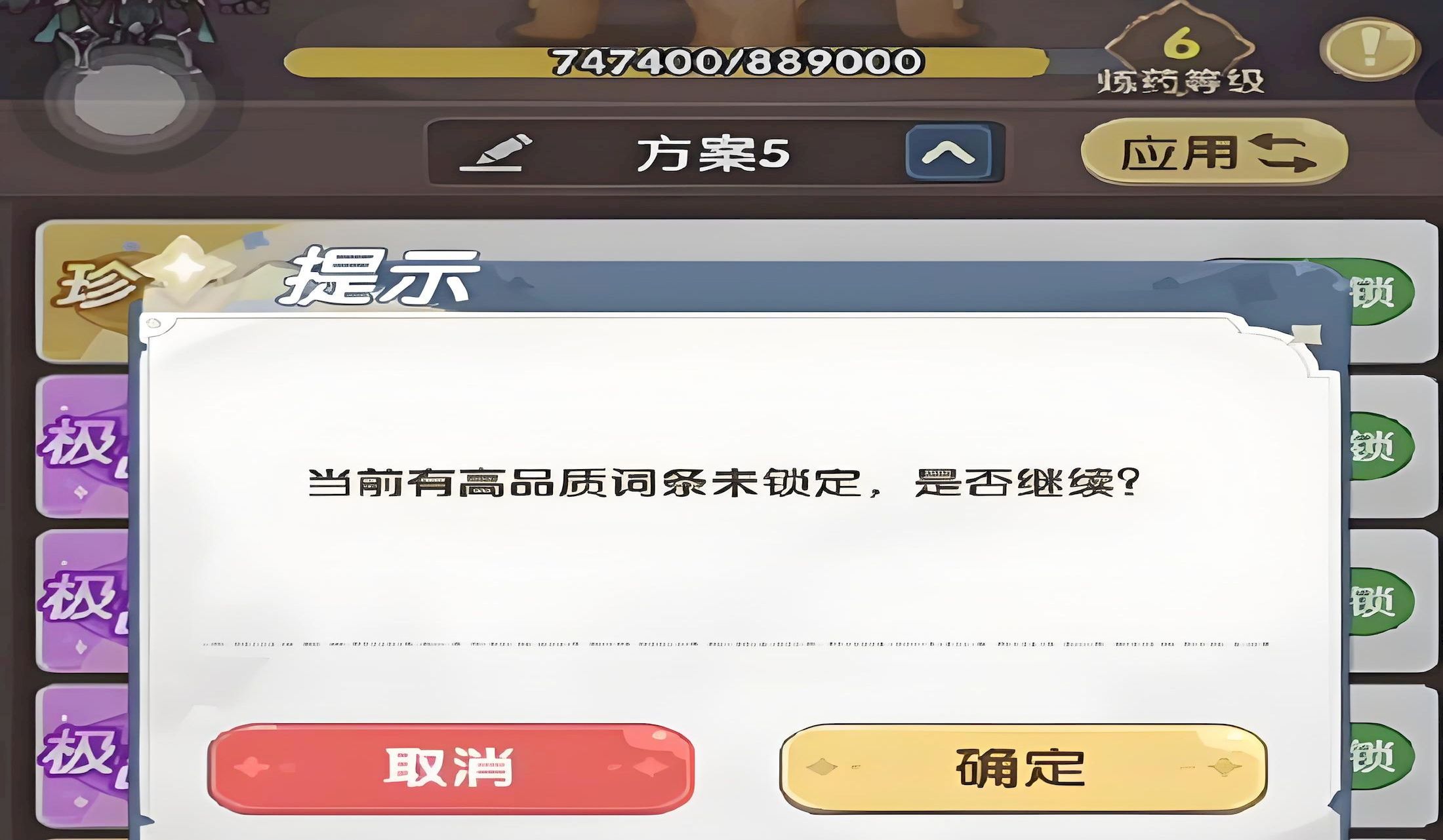3、两个相同等级低阶药剂可融合为更高一级药剂,成功率较高适合稳定提升品质,高阶配方需完成指定任务才能解锁。