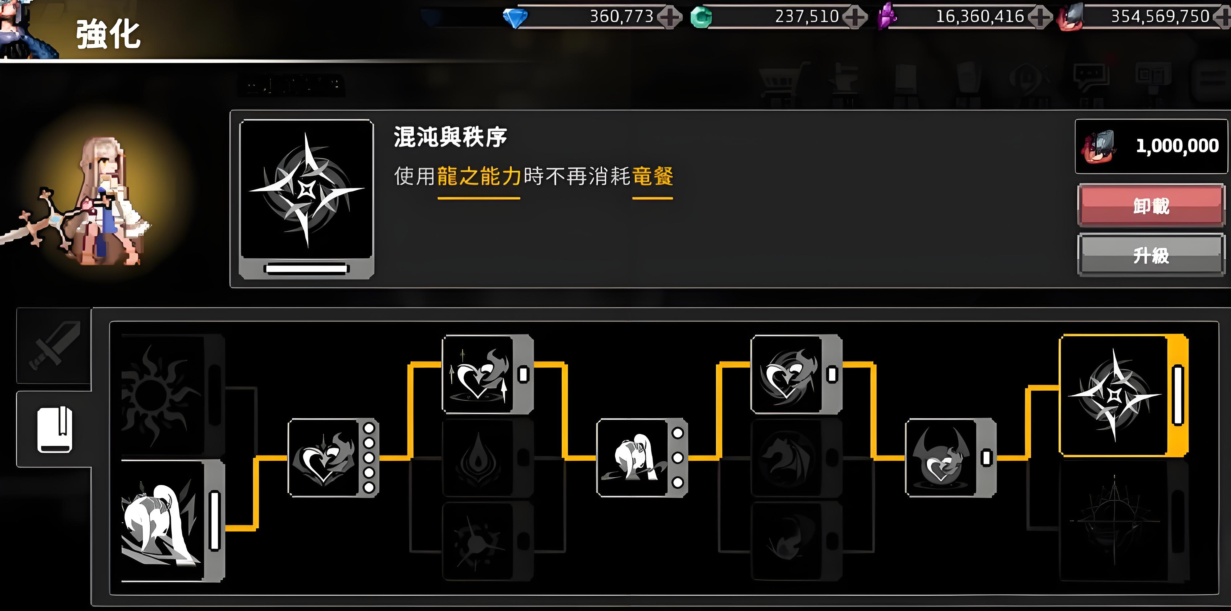 3、技能加点优先混沌与秩序天赋,免除龙餐消耗实现无缝龙化循环,复活技能投资神圣属性拉满五次复活提升续航。