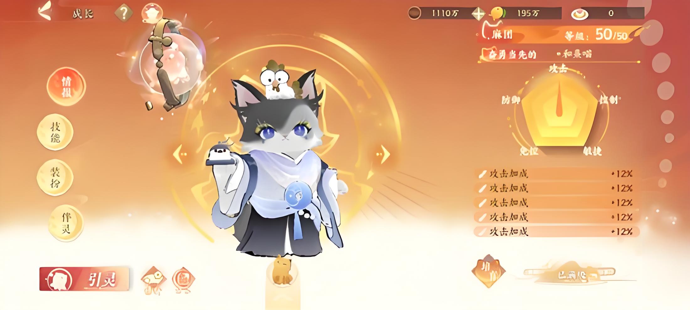 4、四十级猫技能分两类,猫一提升非刘娥天命下群体奶治疗系数与受治疗量,猫二提高毒伤敌方达二十层流漪时增攻最高角色毒伤。