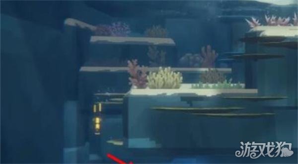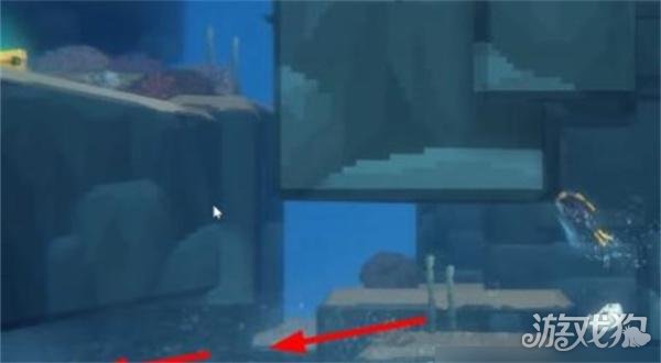 1、完成支线任务“调查可疑珊瑚”,从章鱼洞穴出来后,按照箭头方向移动。