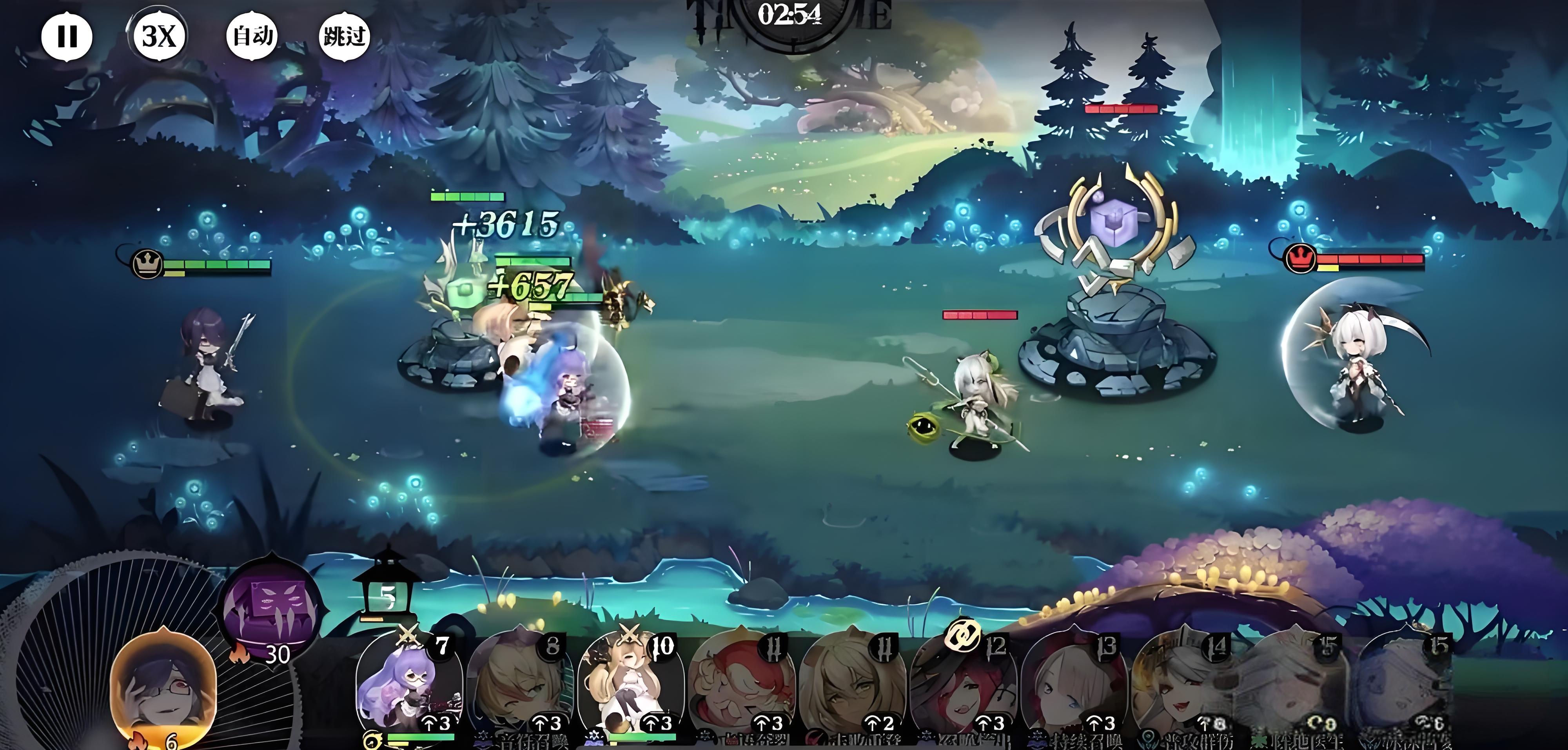 4、阵容搭配以琳为主力输出,适合召唤流慢节奏战斗,搭配南希得群体伤害致盲,还能给我方残血单位提闪避增生存。