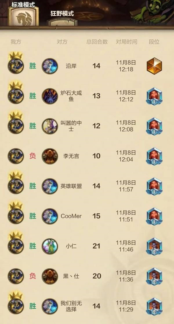 卡组是抄的其他老哥的,当时抱着试一试的心态用了一下,没想到意外好用,卡组优势主要是造价便宜,面对元素法大概64开,面对大法术法基本是碾压对局。战士德鲁伊是五五开对局,主要看他的手牌,他有可能把你认成土灵骑来留牌,可能有微小的信息差优势