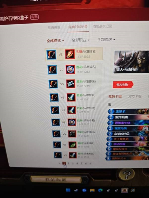 上个月一直打机枪战,就是补水战或者防战,带照相加学徒,可惜改来改去还是在钻五到钻二反复摩擦,偶尔打满四发弹夹很爽就是,后面抄了套蛋猎很是厉害,差两把传说到现在偶尔玩玩一路连胜上传说,自己改了一个点,去掉一张发现加了一个牛,现在有大主教莱丽中后期根本不缺发现,牛里放了另一张发现,一张老鼠,一张专门打轮盘术的法术,一般不带牛的蛋猎打术士劣势,这张属于翻盘卡可以无脑拿,实在卡手就拿发现,老鼠打战士拉key牌或者有场面拉出来用穆克拉撞掉!