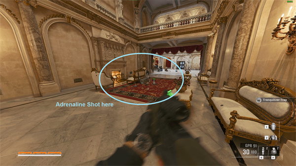 在“High Rollers”进行到一半时,您将夺回Case的控制权,并在赌场内进行战斗。就在敌人盾牌精英出现之前,转弯前你的左边会有一个藏匿处。检查藏匿处是否有单独的肾上腺素射击,并准备好将其用于即将从楼梯上下来和柱子周围的敌人。不要试图杀死盾牌,它们需要很长时间才能用头部射击杀死。记住,在此期间你也可以四处走动,所以如果你因为屏幕失真而看不见,如果需要的话,可以靠近一点。