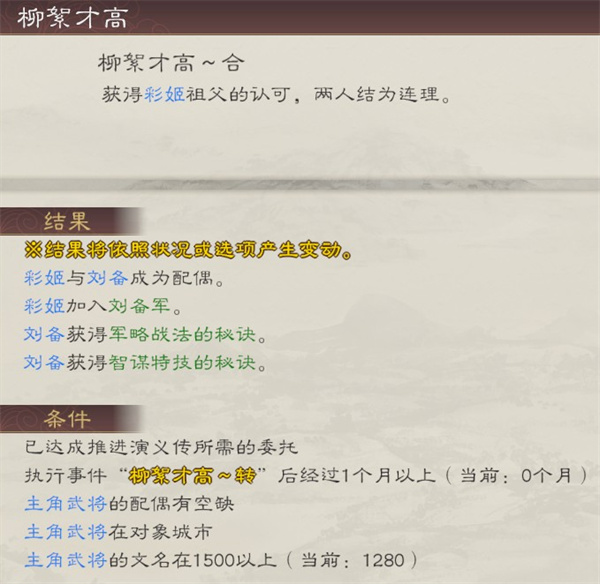 在回合制战术策略游戏三国志8重制版中有一个女性角色为柳絮才高彩姬,部分玩家不知道怎么娶她以及娶她有什么好处,下面就为大家带来三国志8重制版中娶彩姬的条件以及作用说明,有需要的玩家可以参考。