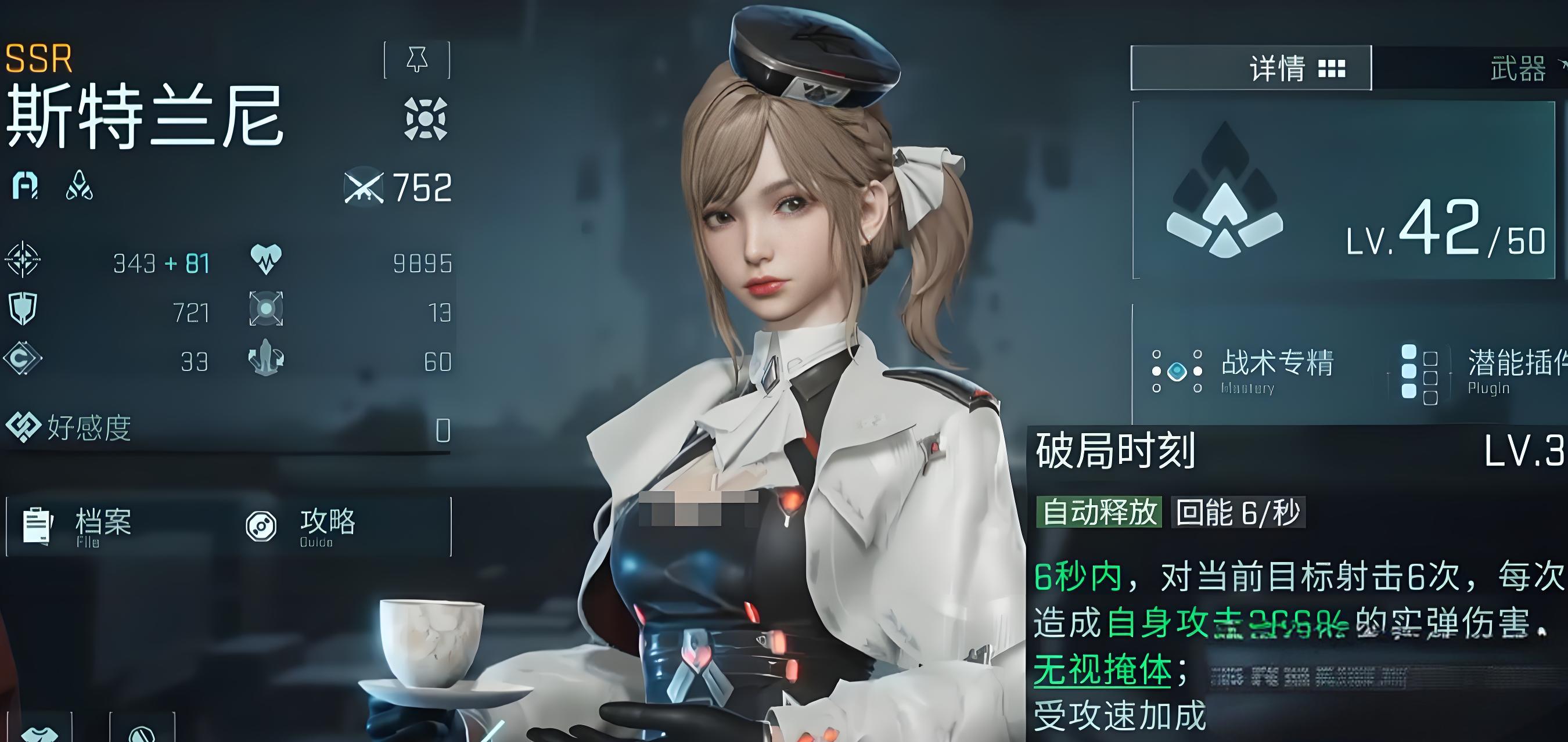 1、大招打压吸筹对射程内敌人随机攻击四次优先不同目标,造成自身攻击312%电磁伤害且无视掩体,初始能量40释放效率高适合循环队伍。