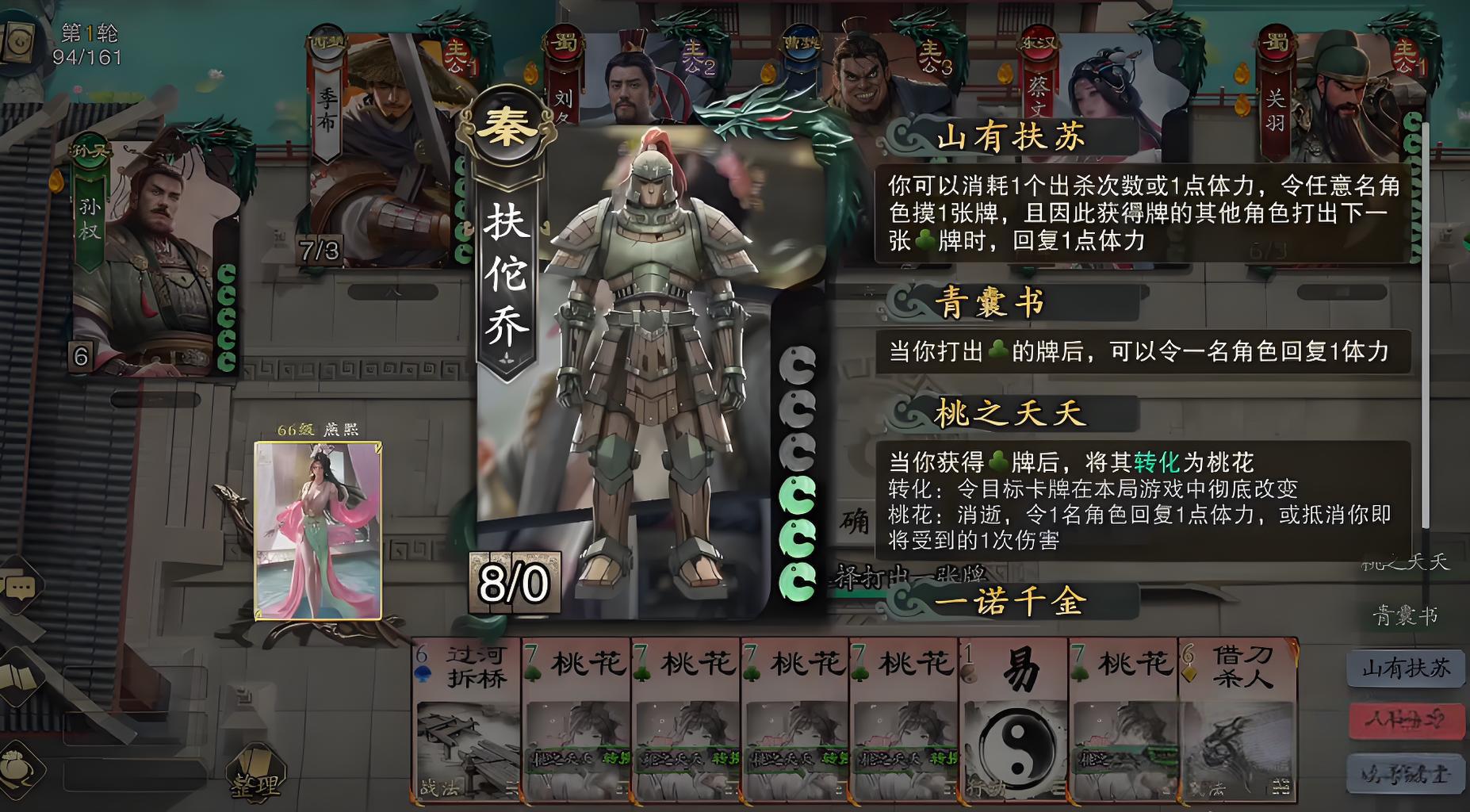 4、荀彧加左慈加陈胜组合可熔炼出高潜力武将,借卖血换牌突破卡牌限制,凭变身技能实现无限换将与技能变化。