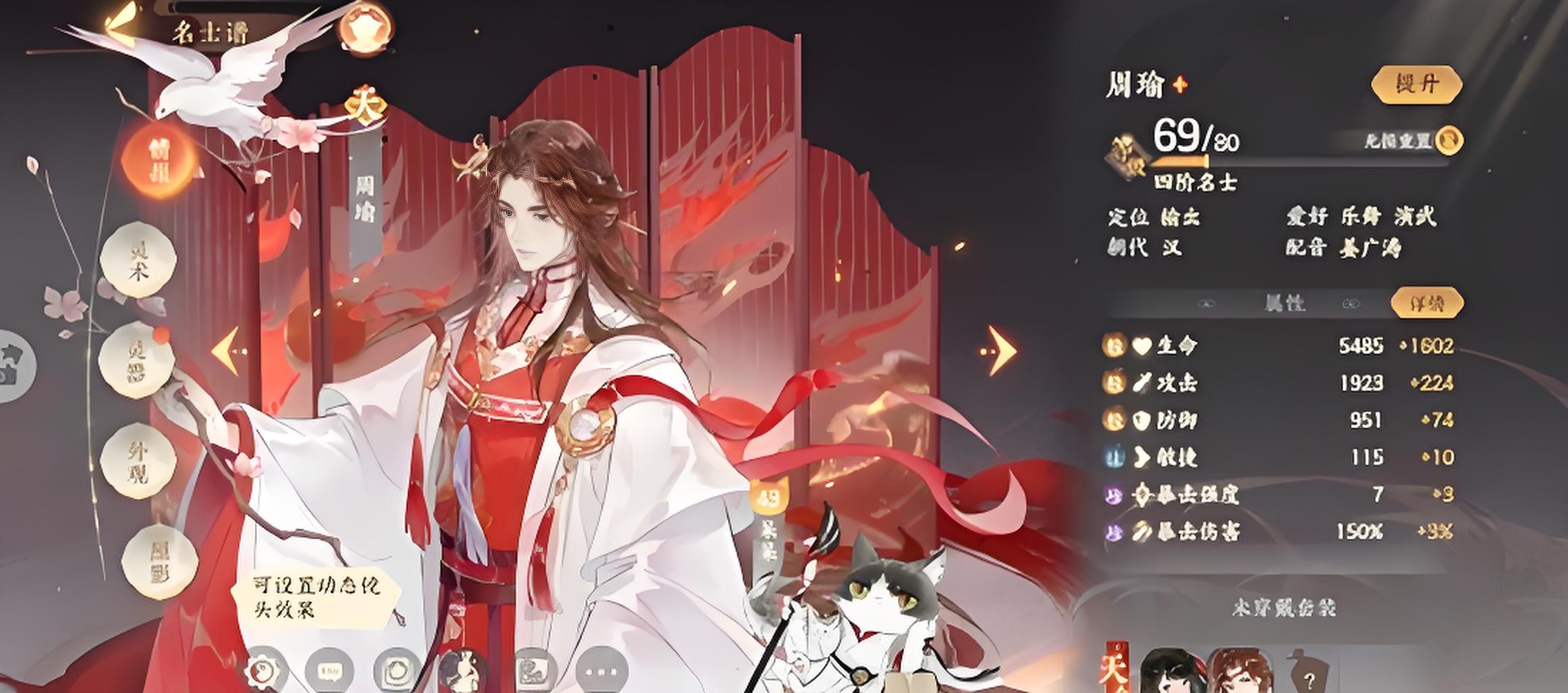 忘川风华录中周瑜是定位特殊的名士,输出数值因缺乏无视防御或攻击增加等额外增益,在当前环境下表现不算顶尖,依靠风火与连锁机制,辅助性能拉满。玩家需结合其普攻附加风火、特性挂连锁、觉醒清风火提伤害的技能循环,搭配合适猫灵套装与属性,才能充分发挥作用,接下来详细介绍周瑜的培养攻略。