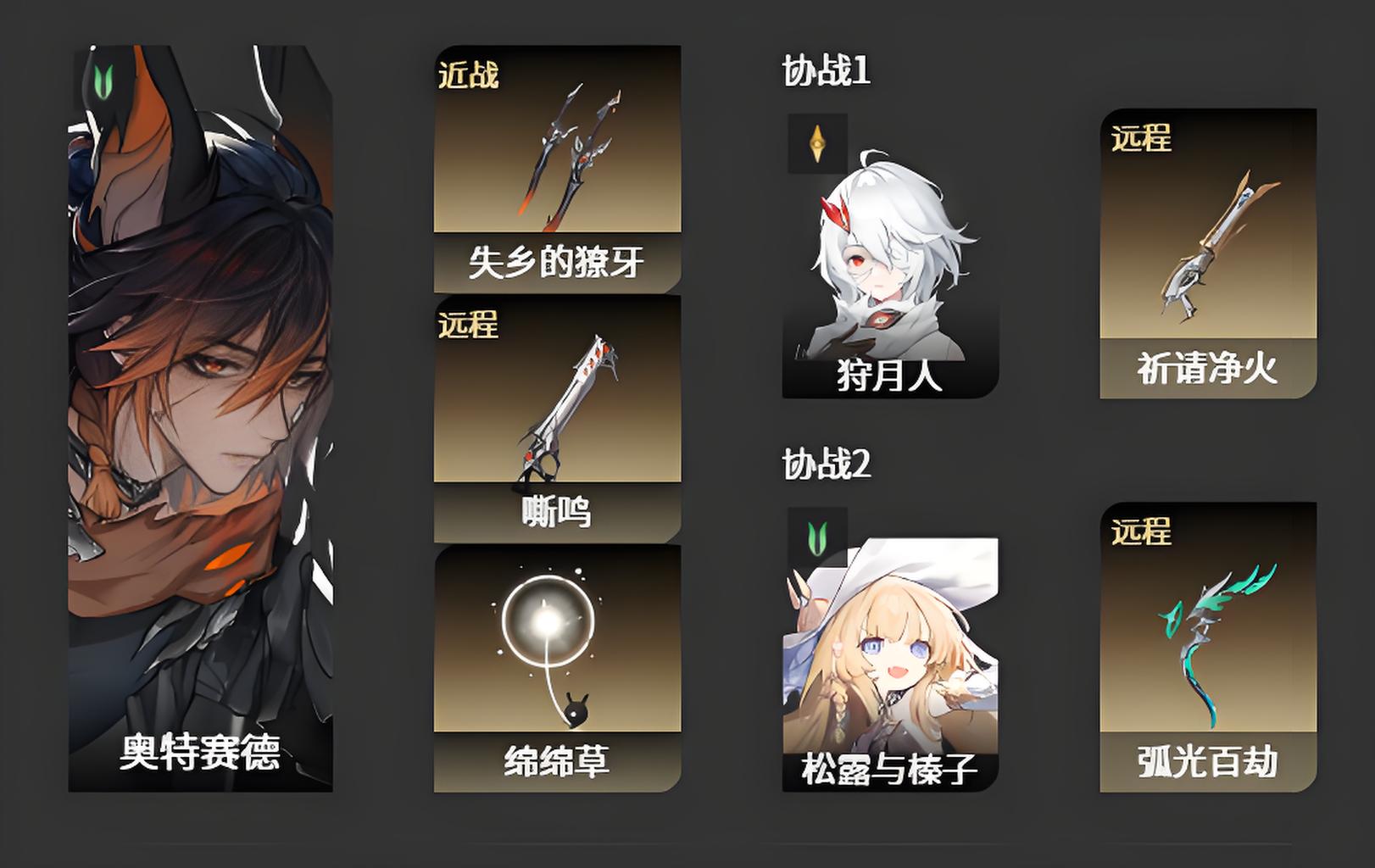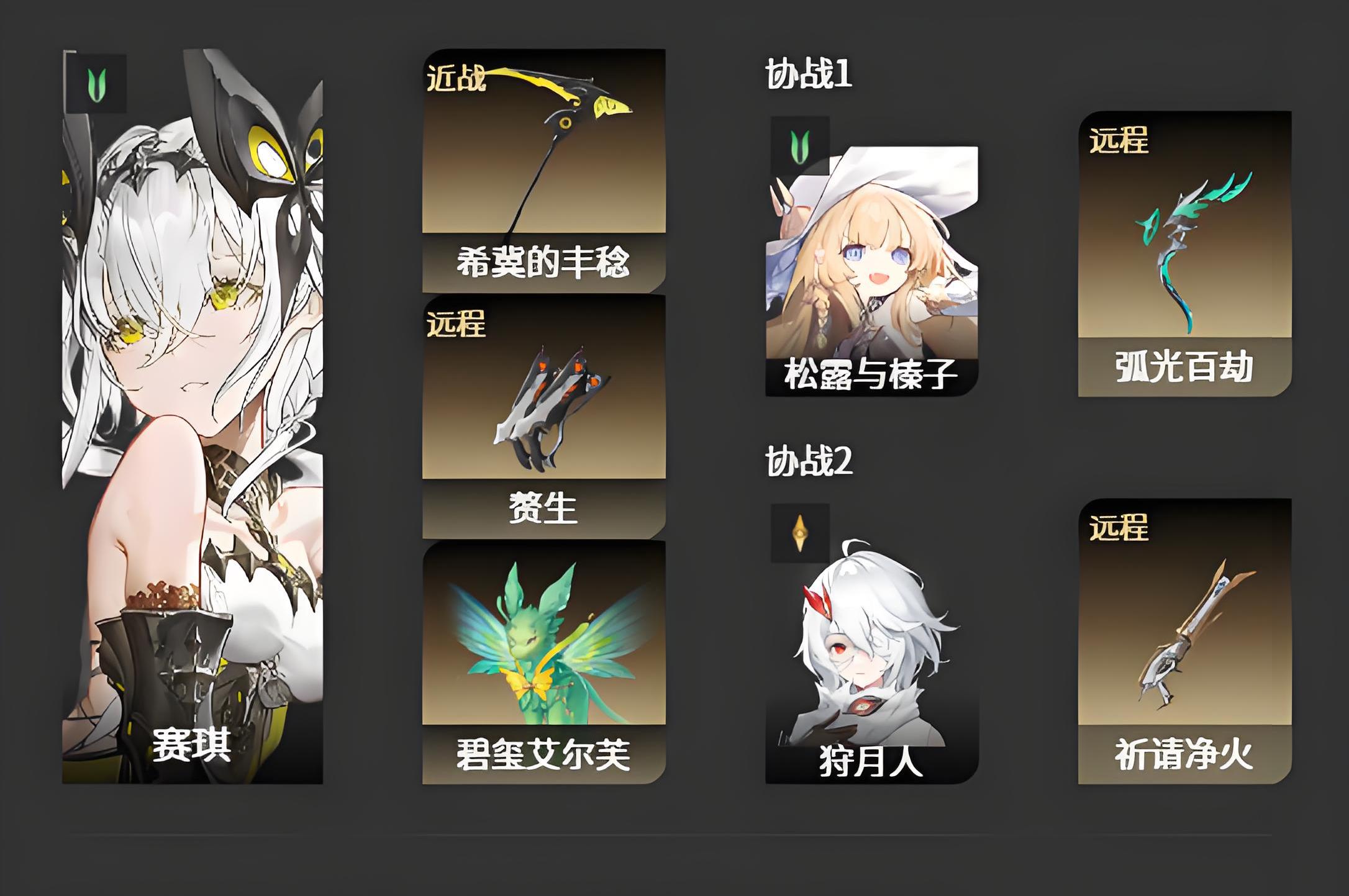 2、爆发续航阵辅助松露与榛子免费加攻击治疗,协战狩月人武器属性放大主输出伤害开战叠增益效果增爆发。