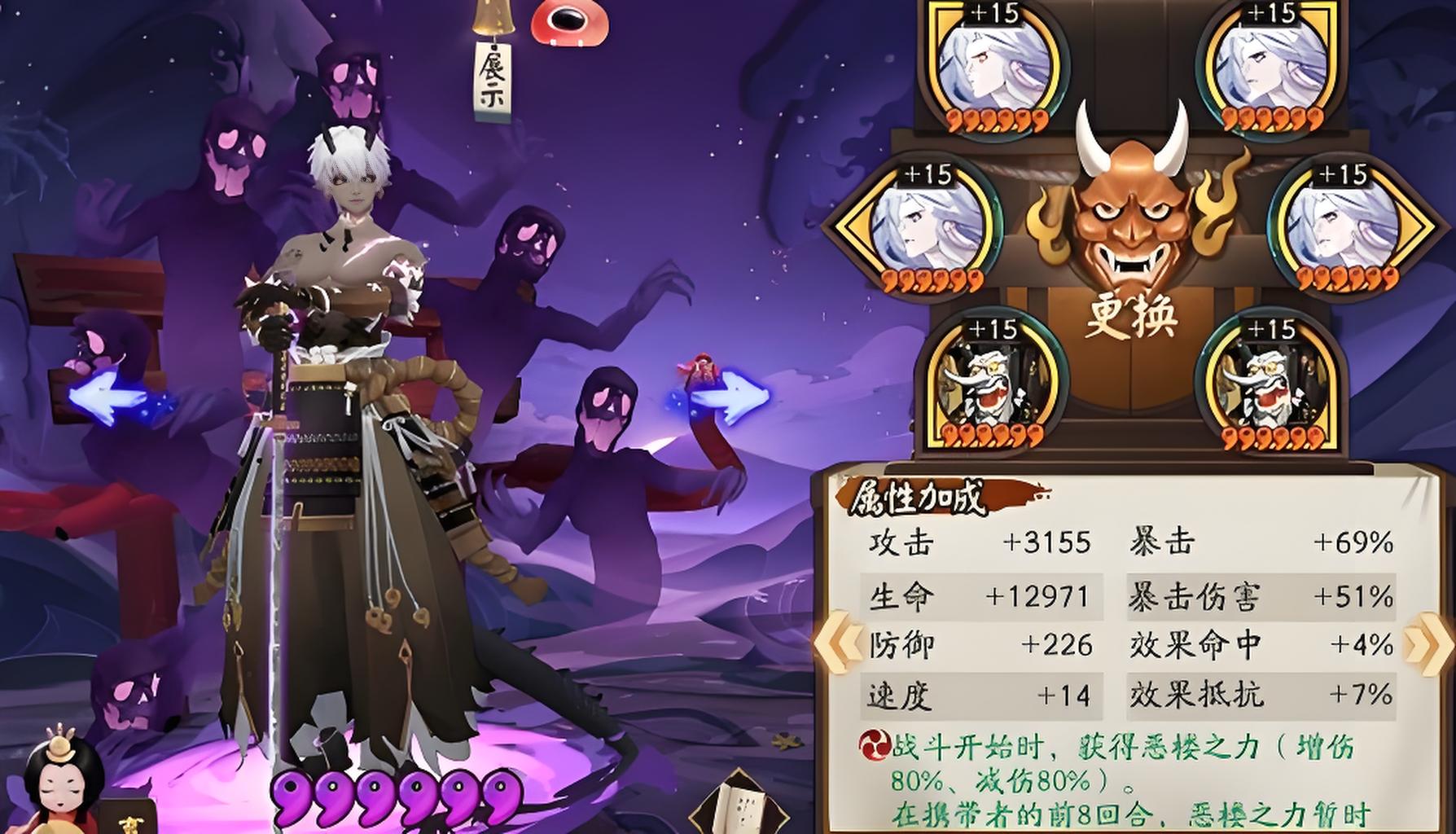 2、9层搭配SSR大蛇、控制式神、拉条式神、打火式神及神乐,SSR大蛇御魂堆速攻爆,式神除大蛇一技能外均需满技能。