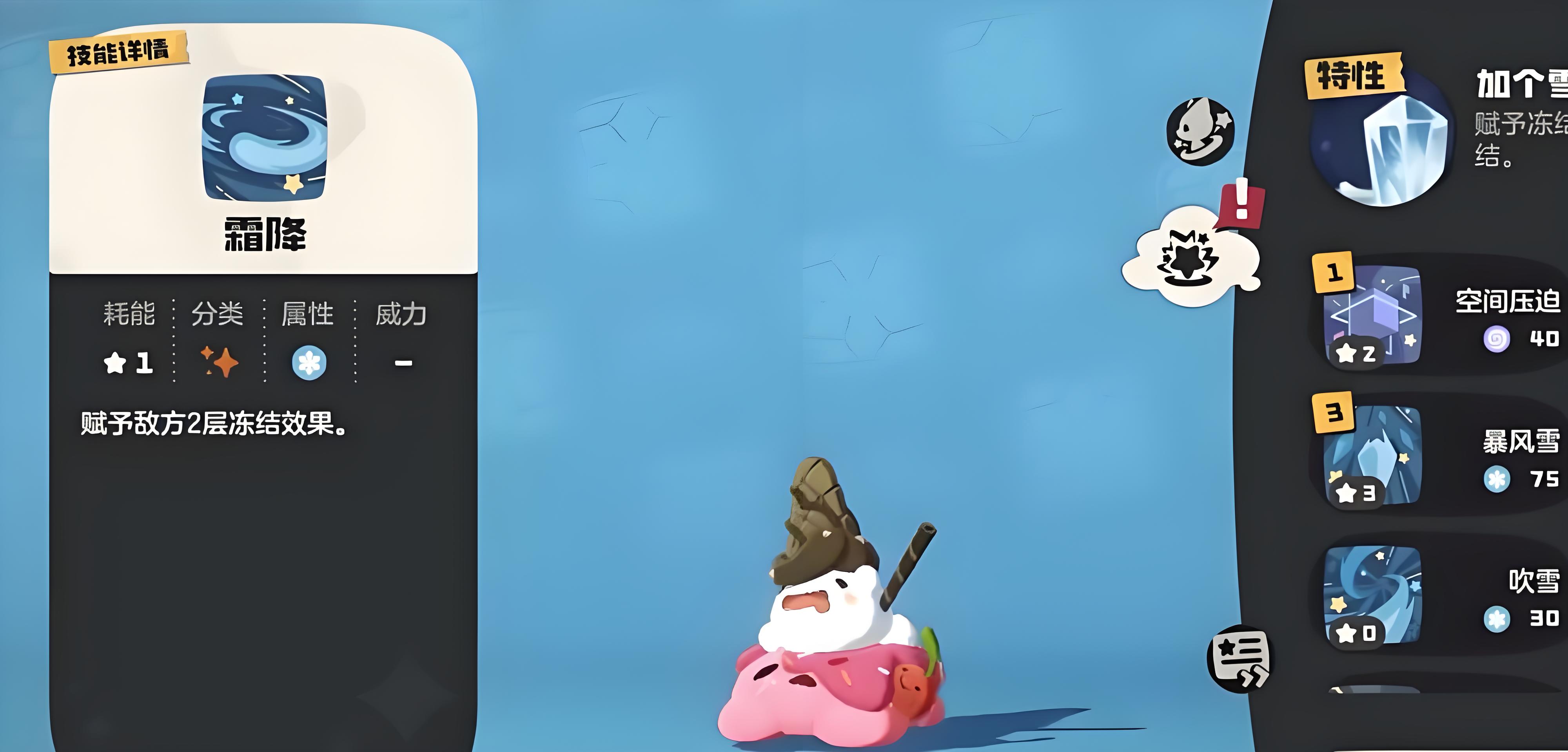 3、霜降队由圣代甜甜雪灵小独角兽雪影娃娃组成,均为冰系变种,核心是叠加冻结效果和能耗限制对手出招。