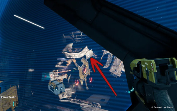 6、附在太阳能板旁边漂浮在太空中的一块碎片上。使用力场工具将其拉近。