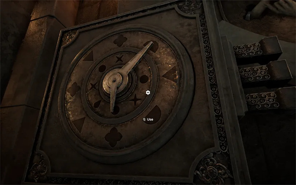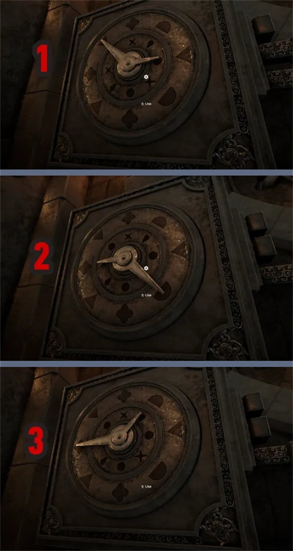 移动时钟的指针,使它们按照编号指向这些符号中的形状,现在可以探索这个房间了。