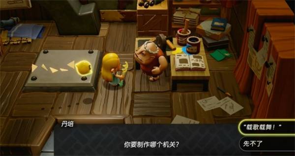 2、在NPC旁边变出【水泥怪】,然后和【丹培】对话选择【修理机关】-【载歌载舞】;