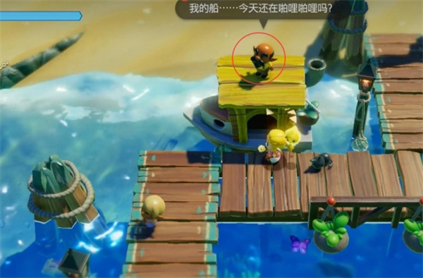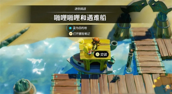 1、前往【海滨村】与图示位置的NPC对话选择【看见过】-【我朝气勃勃】触发迷你挑战【劈里啪啦和遇难船】;