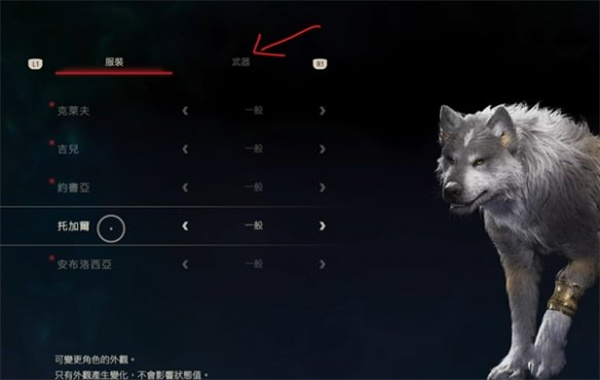 在默认页面是更换克莱夫和吉儿等人的服装,接着我们点击上方的武器就可以开始更换了。
