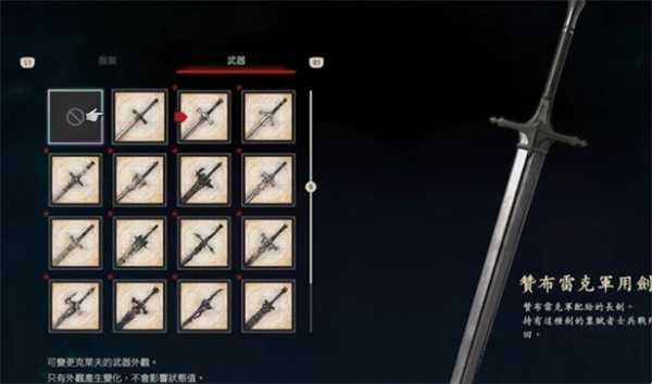 在这个页面中我们以往获得的武器外观都会显示出来供我们进行选择。