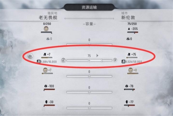 3、在殖民地的存储库里塞满石油,之后切换新伦敦和殖民地;
