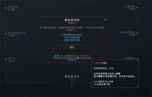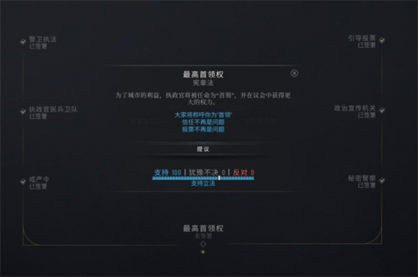 关于0反对票通过最高首领权政策方法分享完毕,只要全票通过就可以解锁这个民主万岁成就了。
