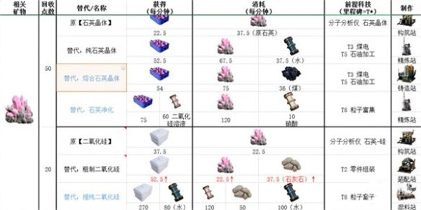 我们可以利用构筑站来制作石英晶体以及二氧化硅,使用精炼站获得纯石英晶体以及石英精华。