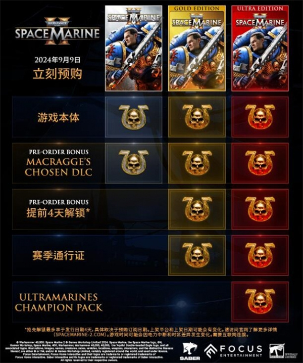 第三人称射击动作冒险游戏战锤40K星际战士2已经正式上线,游戏分为标准版、黄金版和终极版,部分玩家不知道黄金版多了哪些内容,下面就为大家带来战锤40K星际战士2普通版与黄金版的区别说明,有需要的玩家可以参考。
