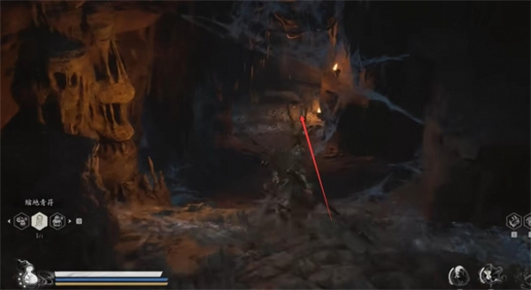 1、前往【盘丝洞】-【上层】往右边的路走然后下坡;