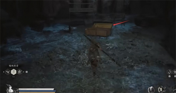 2、下坡后往左边走,在路的尽头有一个宝箱;