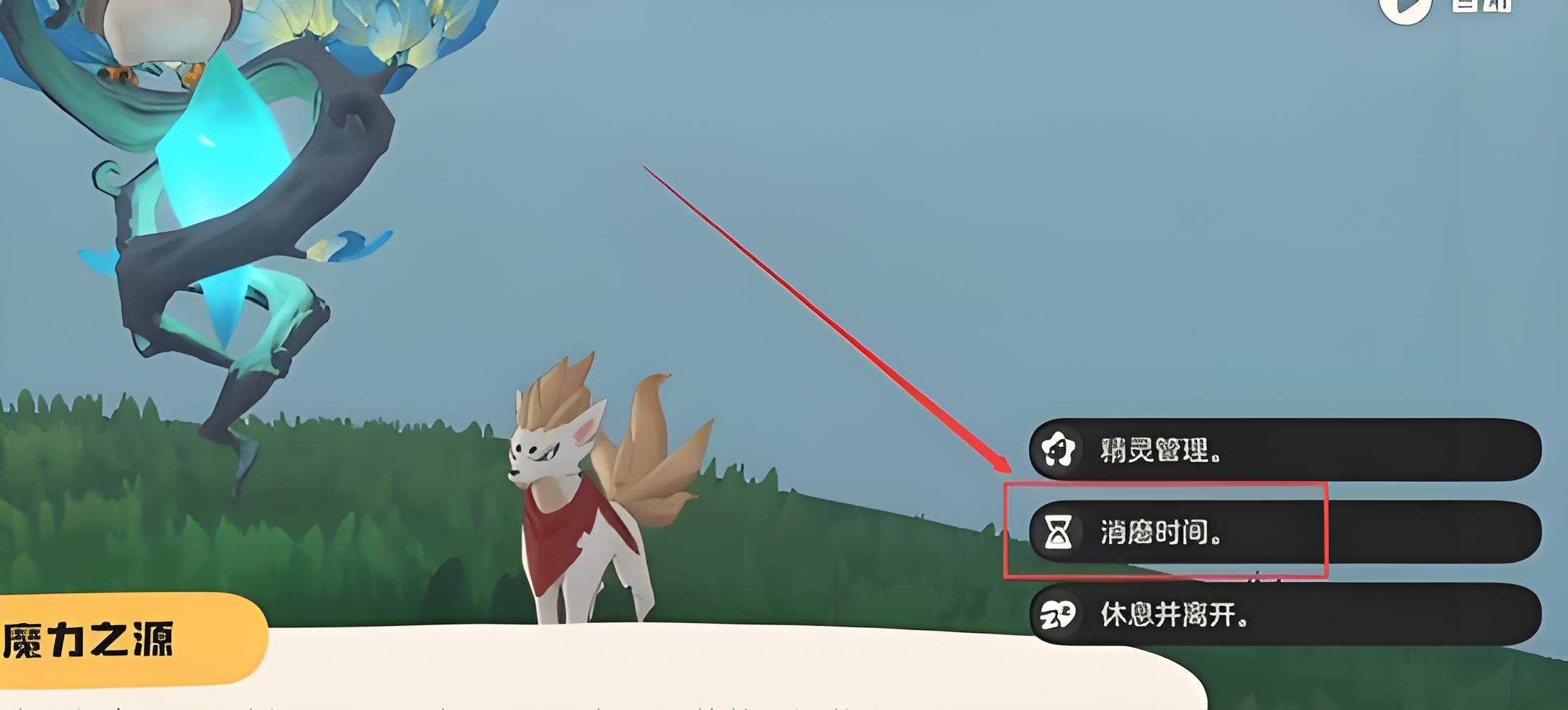 2、玩家可通过点击场景中的魔力之源调整游戏内时间进入夜晚,这样能有效提高遭遇小灵面的概率。