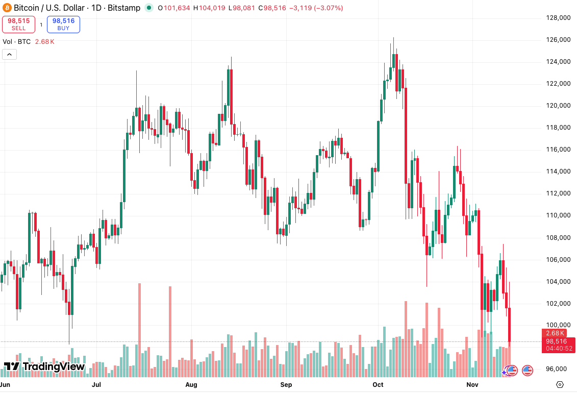 这是本月内比特币第二次失守10万美元心理关口。