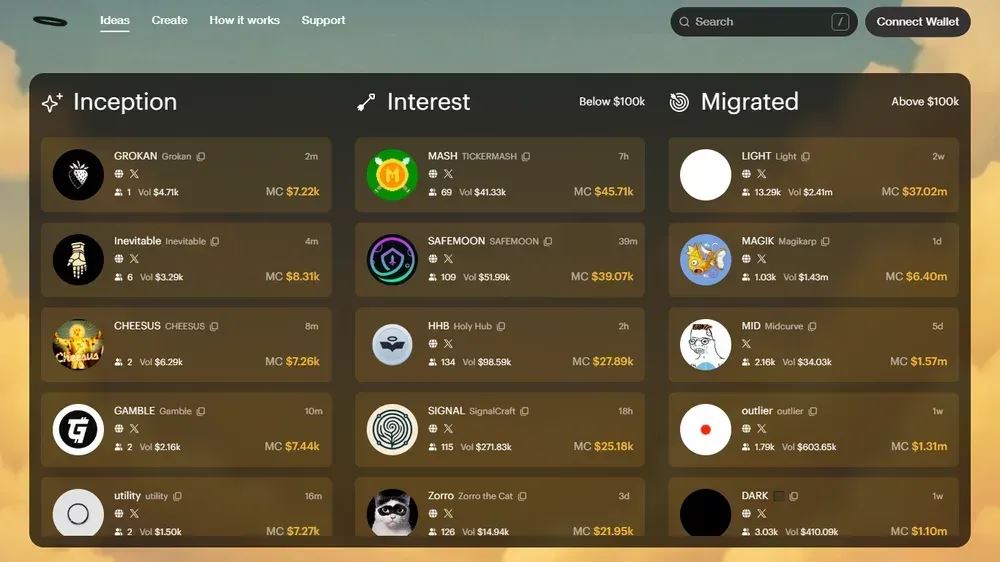 Heaven 为交易者和创建者提供了一个简单明了的流程,允许任何人浏览、交易或发布新代币。请按照以下步骤使用该平台: