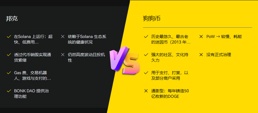 要理解BONK,就必须与Dogecoin 和Pepe 这些既有迷因币进行比较。每个项目在技术、分配与应用方面的策略都不同。