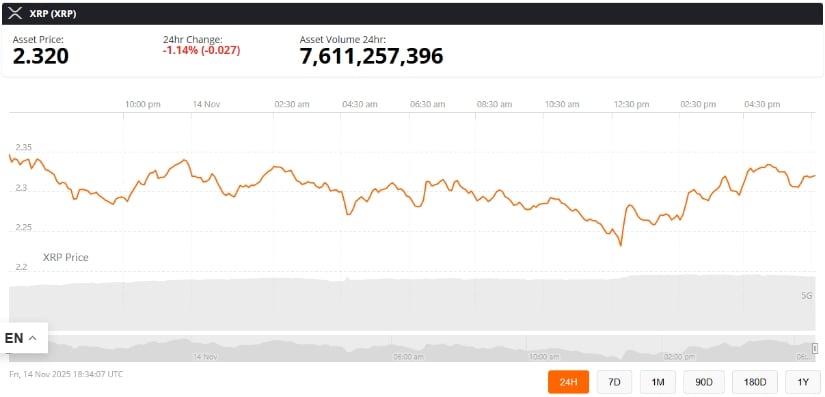 截至发稿XRP报2.32美元,24小时跌幅1.14%。来源:Brave New Coin