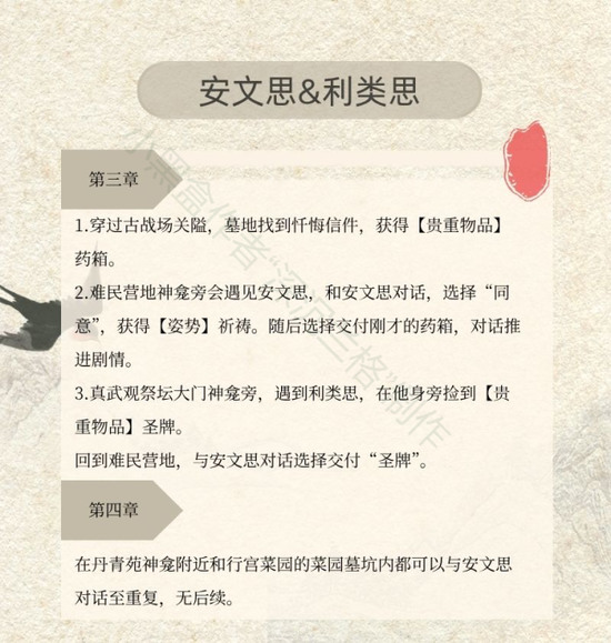 明末渊虚之羽全支线任务攻略分按照任务顺序走不然很容易错过情节,甚至整个任务线可能会中断,建议跟着这个攻略,怕剧透的玩到哪儿看到哪儿就行,不要提前看后面的部分。