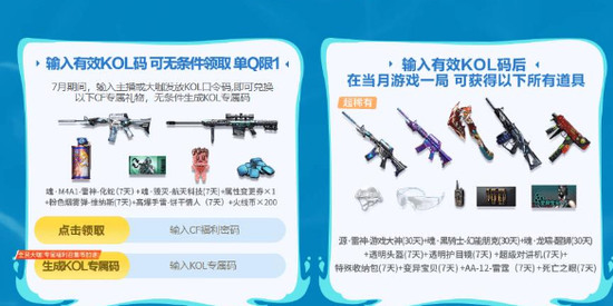 2025CF7月老兵回归(KOL)福利码最新使用方法: