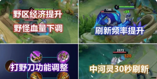 打野刀方面更加明确黄刀适合对抗路英雄,而紫刀适合打野英雄,中路的河道之灵刷新时间也是由一分钟刷新改为了开局30秒就刷新,打野可以进行河道之灵开局也可以放弃河道之灵的争夺。