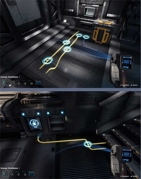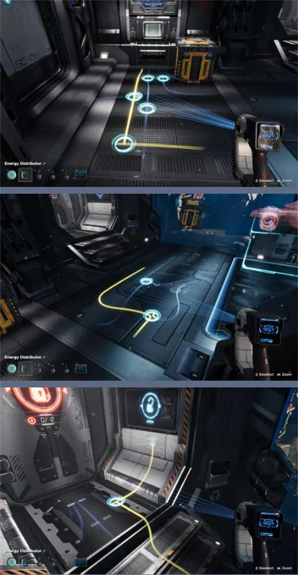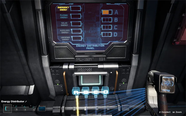有两个上锁区域只需要 2 点能量即可打开。首先将所有能量引导到 A 线。