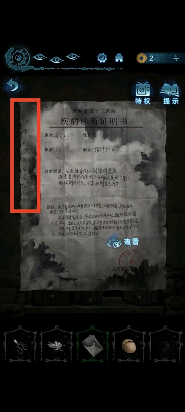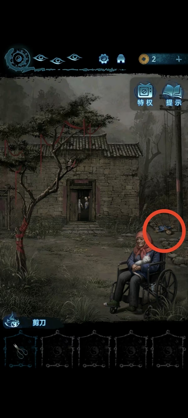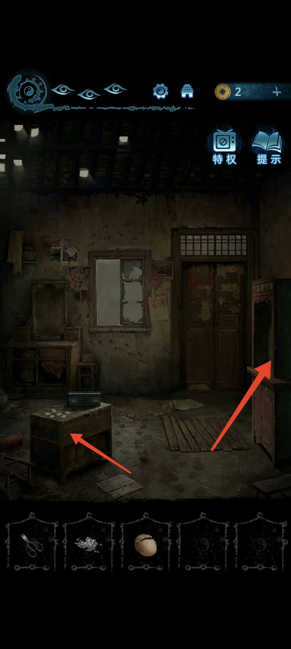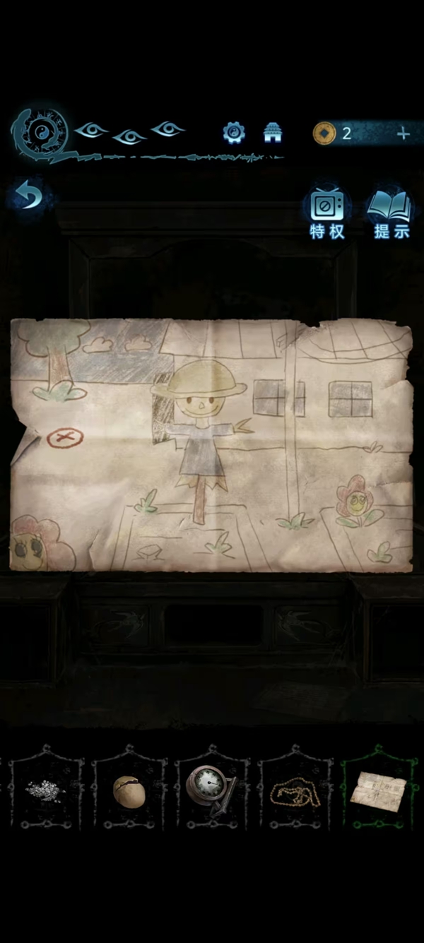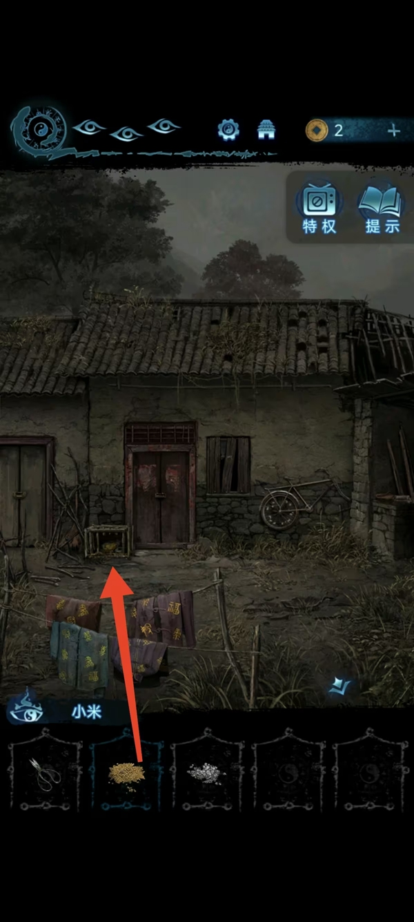 1、开局先去看电线杆上的红纸,再用剪刀把稻草人剪开获得袋子,进院子右边把袋子的东西倒进筛子里面,获得米。用米喂鸡获得鸡蛋壳和纸条,拆窗上的木板钉子(纸条有顺序)