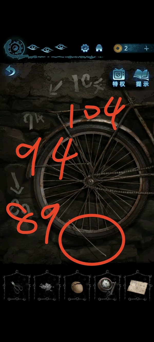 3、给院子的单车装上链条,获得天线和线索,给收音机装上天线,分别听104、94、89频道,触发剧情,记得回来拿录音带,然后从女主摔出的洞下去。