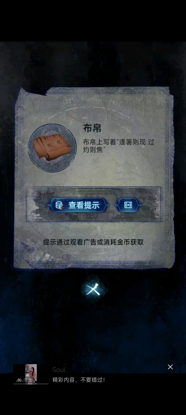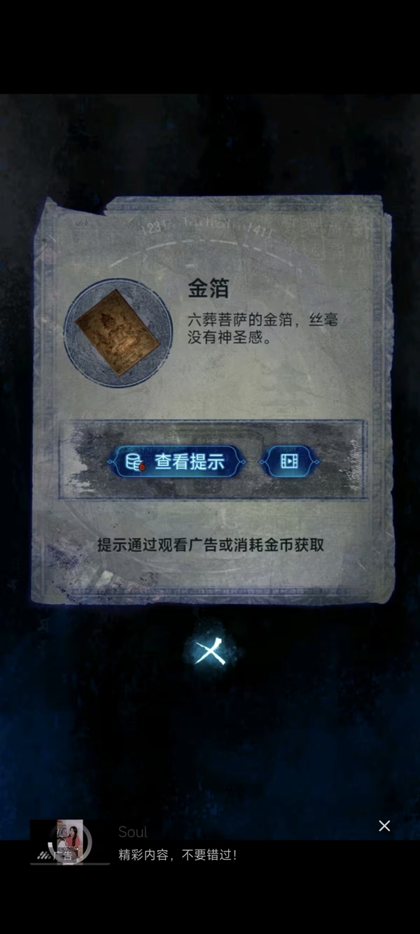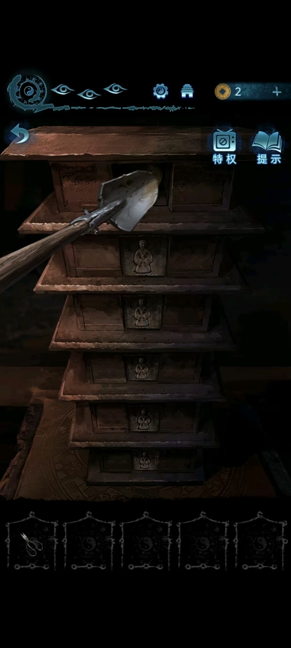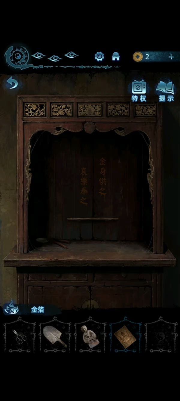 7、下地下室,把帛画放在台上,出现塔,把小人补齐,按照图中步骤打开机关,中途卡住用铁锹撬开,获得八卦镜,第三章完。