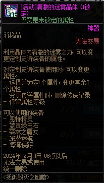· 1月11日维护后~2月1日维护前,通关因果毁灭难度幽暗岛可获取1个,每个角色限定获取1次