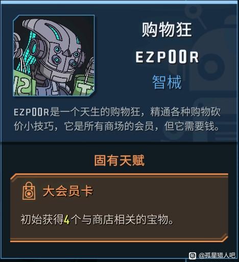购物狂,商店事件可以说是孤星里最稳的事件了,宝物事件不一定能拿到宝物,部件事件不容易拿到部件,但是商店事件一定可以进商店。玩购物狂只需要只需要多拿钱,见商店走商店,见合适的就买,经常不知不觉就成型了,不过建议尽量把支援给的那个额外商店留到后面在用,避免有价无市的尴尬情况。