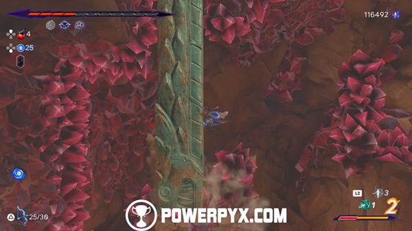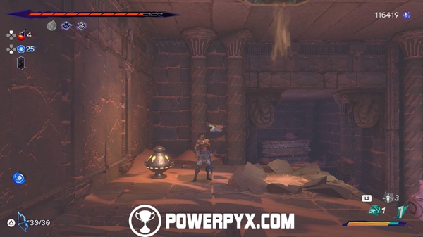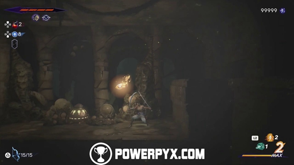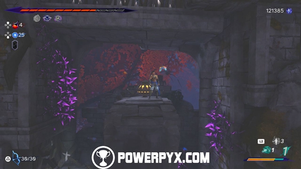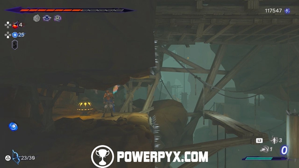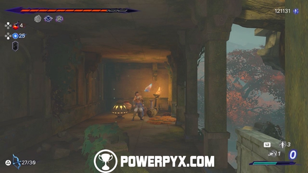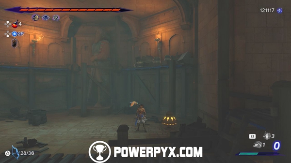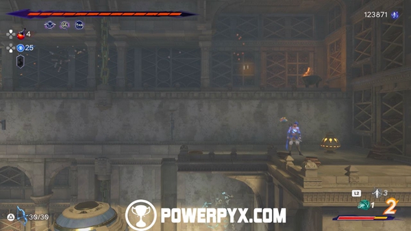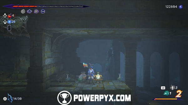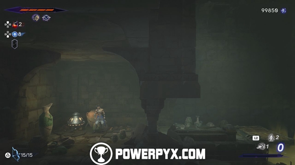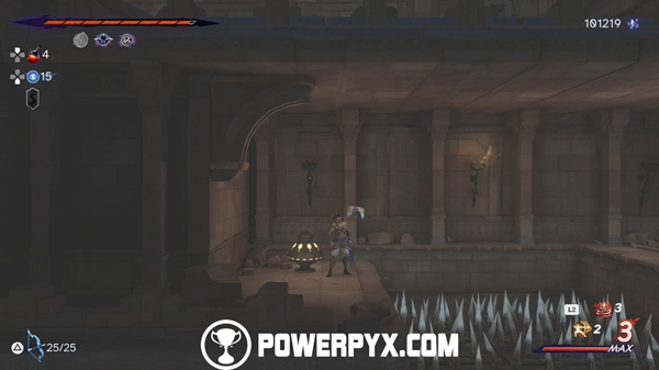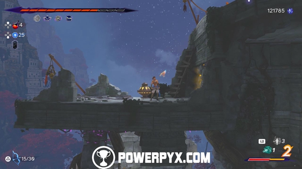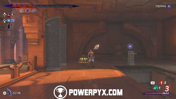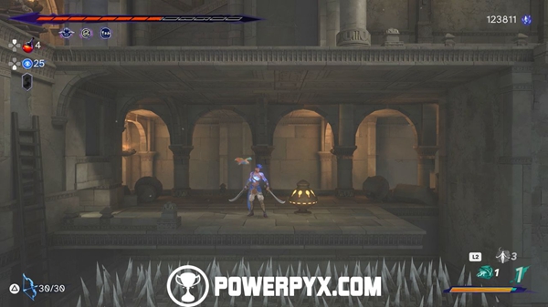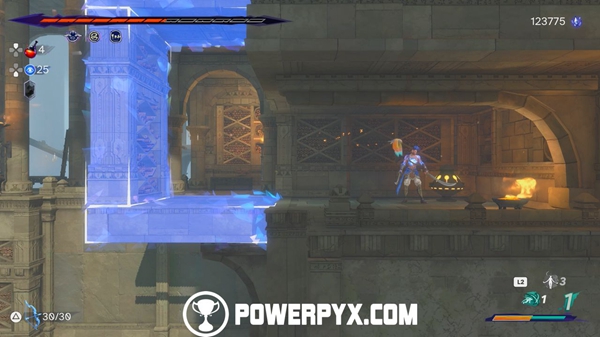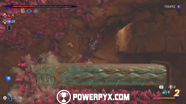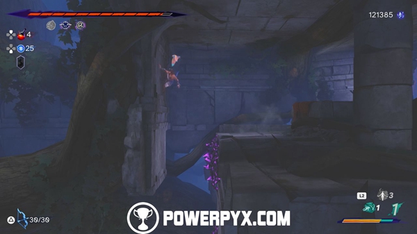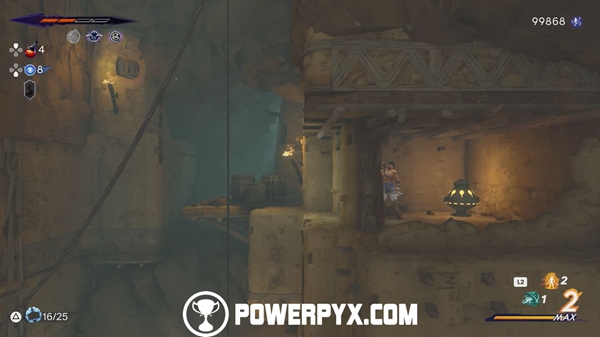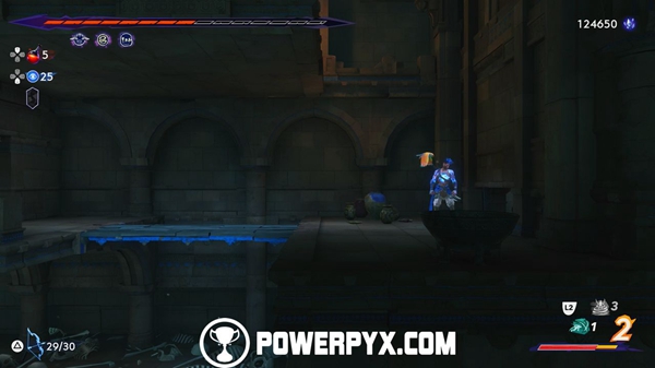 在上面跳跃后,在半空中进行第二次跳跃,用 Shadow of the Simurgh 复制自己。然后让自己下蹲来激活另一条石蛇。现在立即激活你的副本,从石蛇上跳两跳,到达你上方沙瓶所在的路径。
