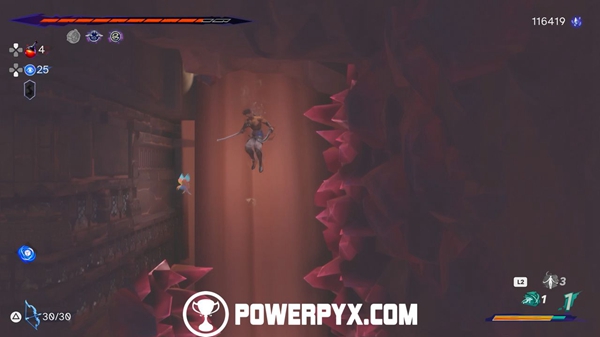 将次元爪抛向空中,从墙上跳下来,然后沿着路径前进。