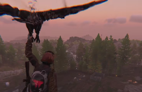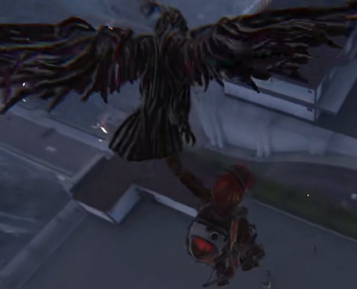 4、这边会出现老鹰带着你飞,当然这边会消耗一些体力,不过要记得千万不要从高空摔一下去,会摔死。