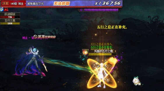 Boss切换至妖剑形态,开始积攒【妖剑释放】能量,约60秒到达100%,需要利用五行气息机制进行打断