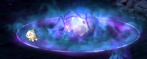 此时地面生成紫色范围提示,石头落下时范围内没有玩家则会造成大范围攻击,需要1名玩家站在范围内