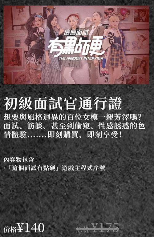 本作是一款模拟面试的全动态真人互动影像的实境游戏,将由玩家扮演女模经纪公司的面试官,透过深浅不同的多道辛辣问答题,累积好感度慢慢突破女模心房,解锁写真等挑战您的心愿!游戏采用第一人称视角进行拍摄,让玩家完全沉浸在丰富的场景互动与真实模拟体验中。
